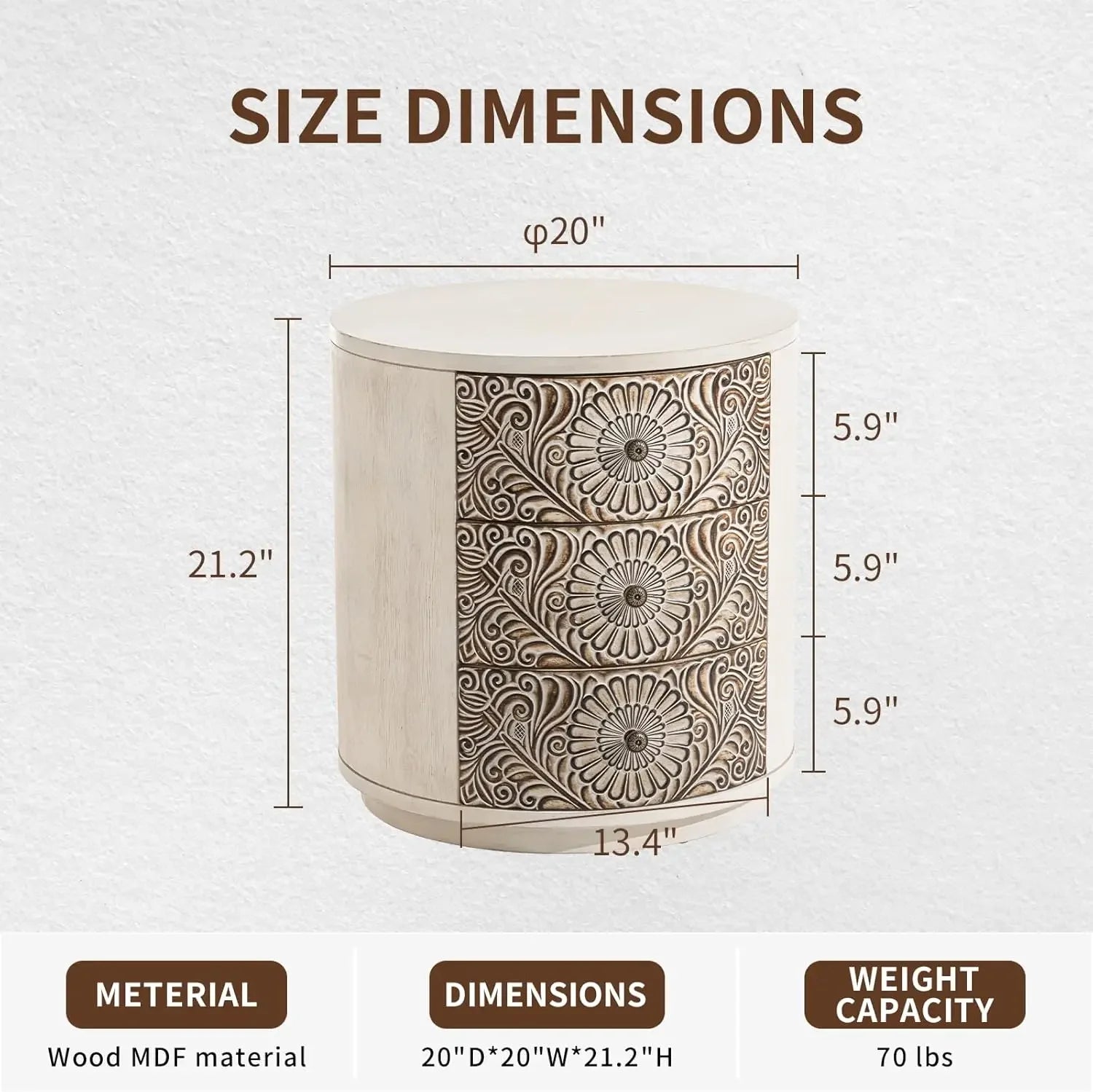 Transform your living space with our multi-functional 3 Drawer Chest of Drawers. This stylish round storage cabinet is perfect as a nightstand, side table, or a chic storage solution for your accessories.