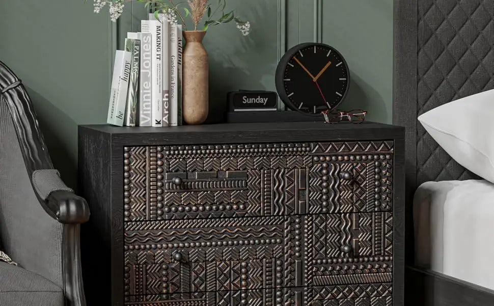 This dresser not only offers ample storage with its three spacious drawers but also serves as a bold focal point in any room. Whether in your bedroom or living room, it’s the perfect addition to elevate your decor.