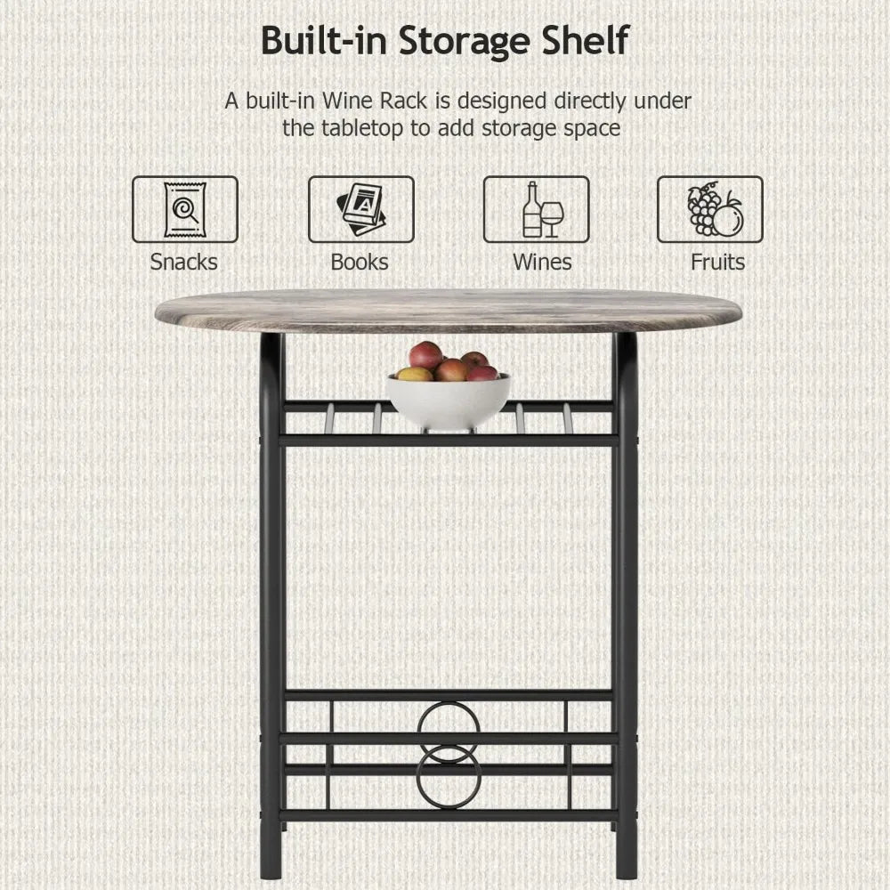 3-Piece Wooden Round Table and Chair Set Space Saving Kitchen Nook