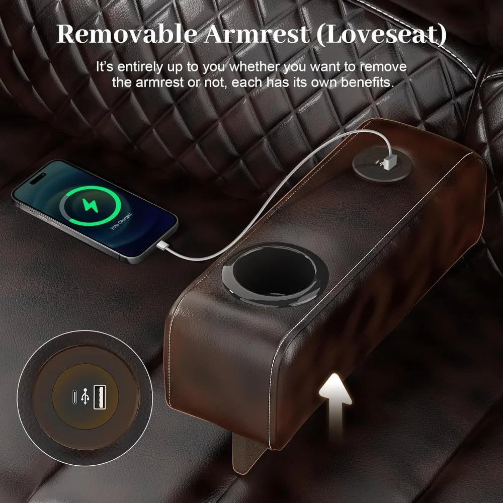 - Removable Armrest: Offers cup holders and USB charging ports; remove for more space and intimacy.
