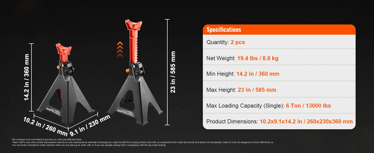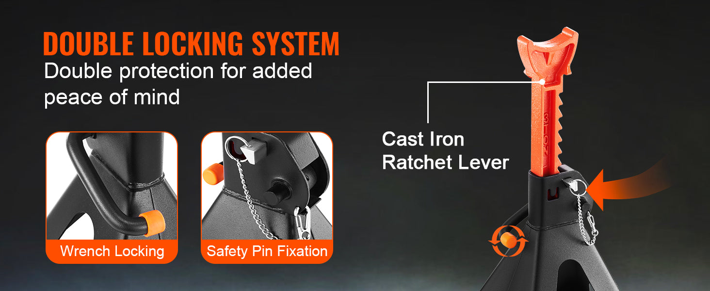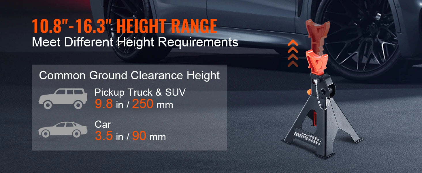 Feel confident tackling your vehicle repairs with Ljustra's dependable jack stands. Designed for both safety and convenience, these jack stands are a must-have for any garage!