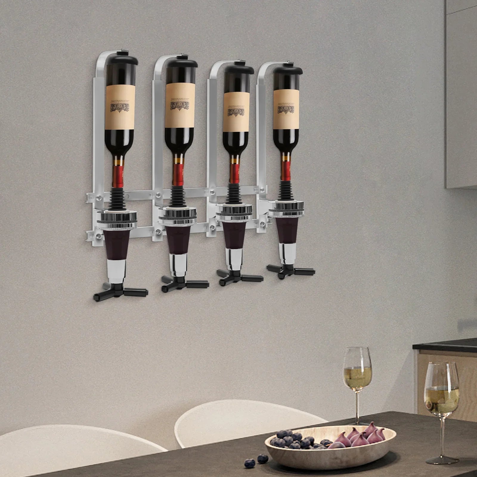 Wall Mounted 4 Bottle Dispenser Whiskey Rack Holder Wine Cocktail Shelf