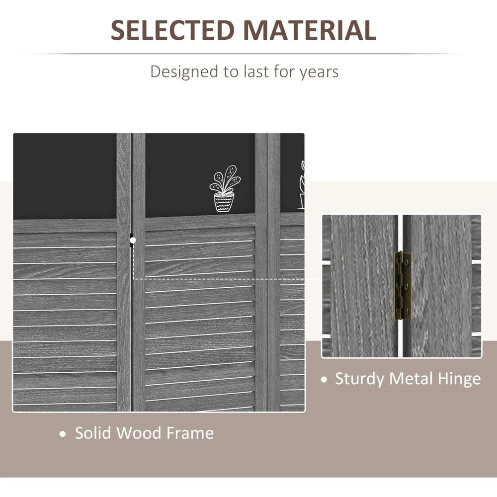 4-Panel Folding Room Divider with Blackboard Privacy Screen for Office Bedroom
