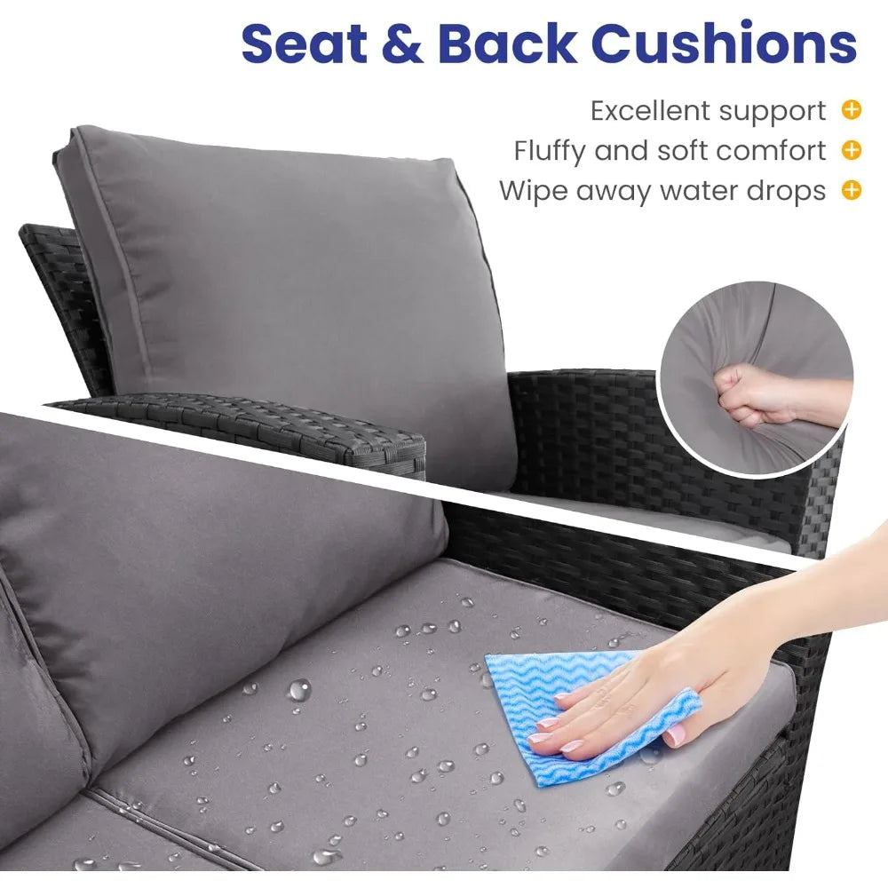 4 Piece Wicker Outdoor Patio Furniture Set Sectional Sofa with Table