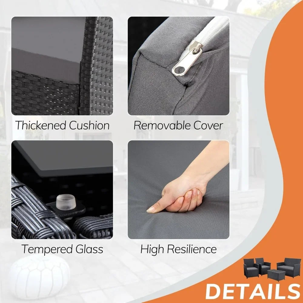 - Easy to Clean: Tempered glass table surface and removable cushion covers