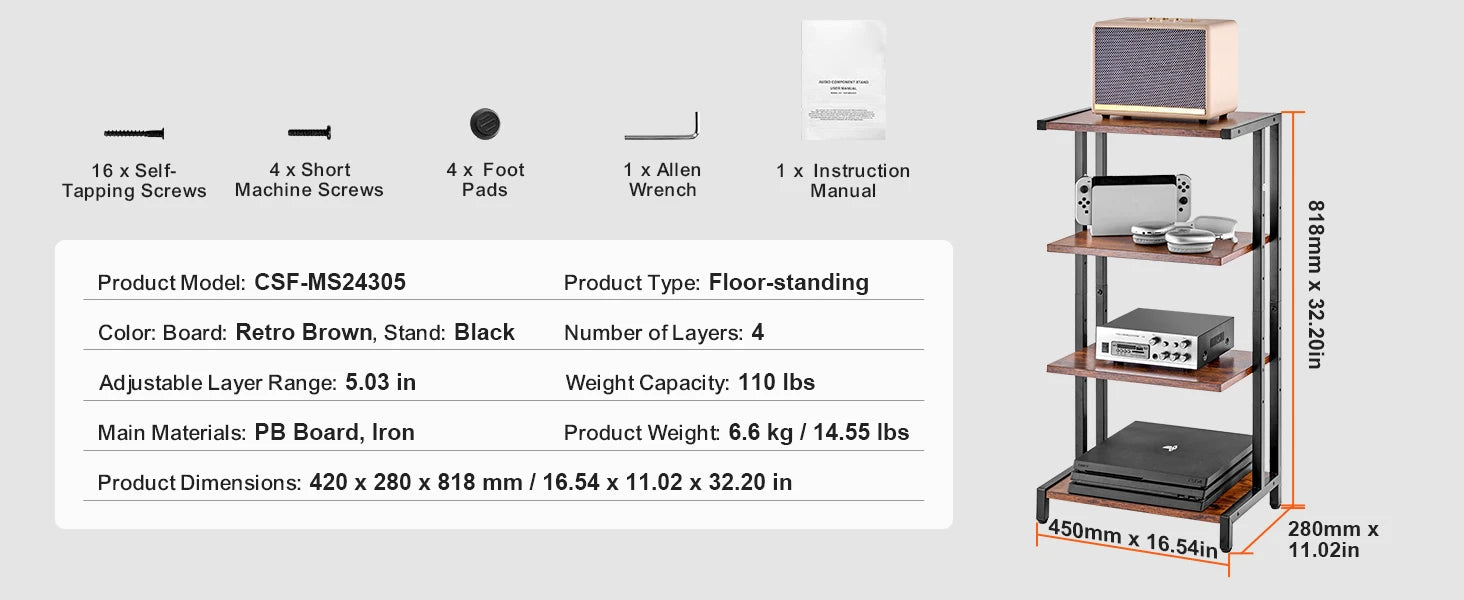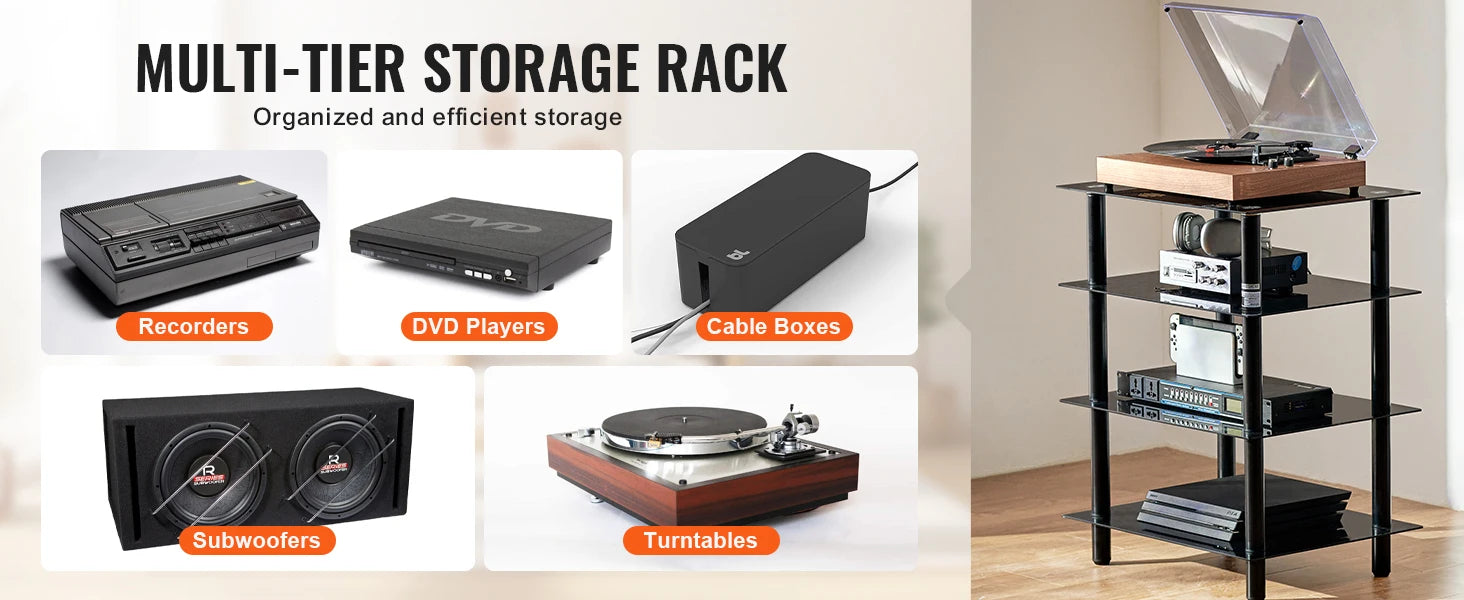 - Ample Multi-tier Storage: Four open shelves provide easy access to DVD players, gaming consoles, and more.