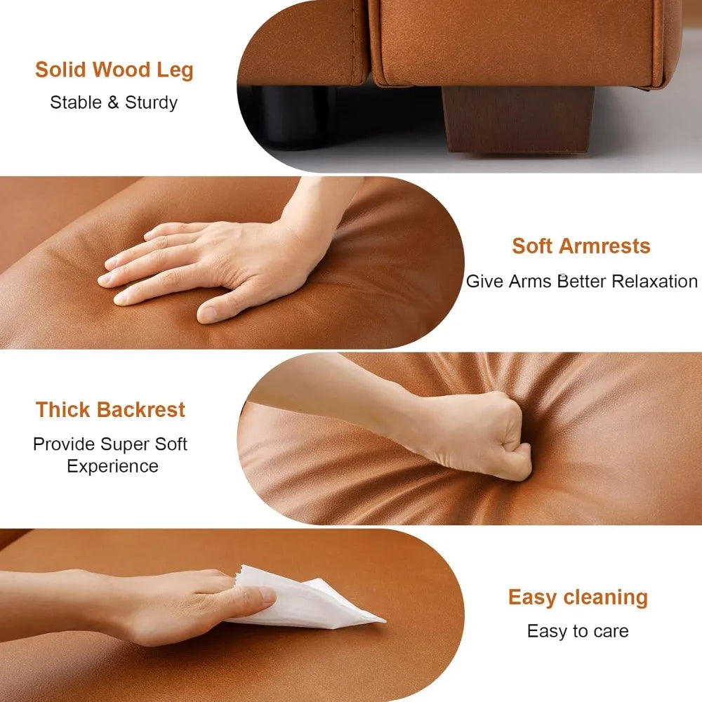 43 Inch PU Faux Leather Sofa Mid-Century Modern Oversized Chair