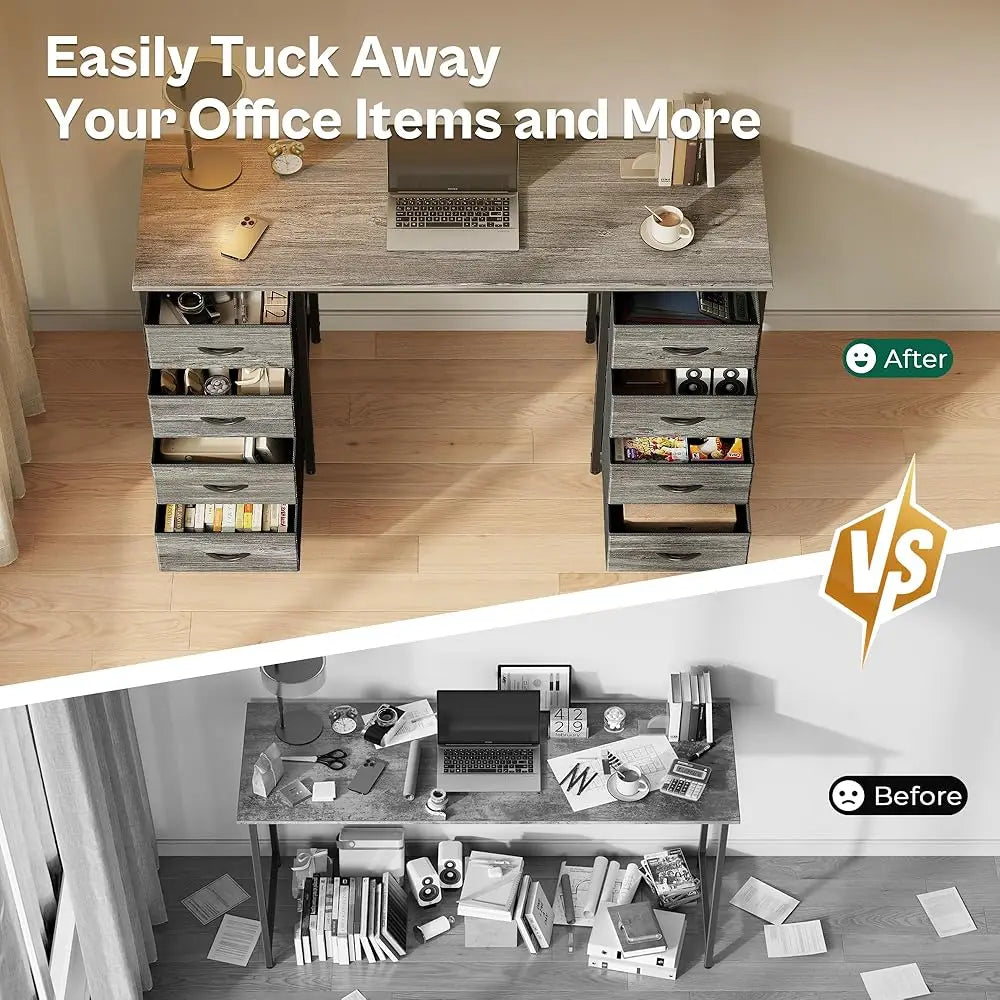 Imagine a home office where everything has its place! The Ljustra 47 Inch Computer Desk is designed with your productivity in mind, featuring 8 spacious fabric drawers that provide ample storage for files, office supplies, and gaming gear. No more clutter—just a clean and organized workspace!
