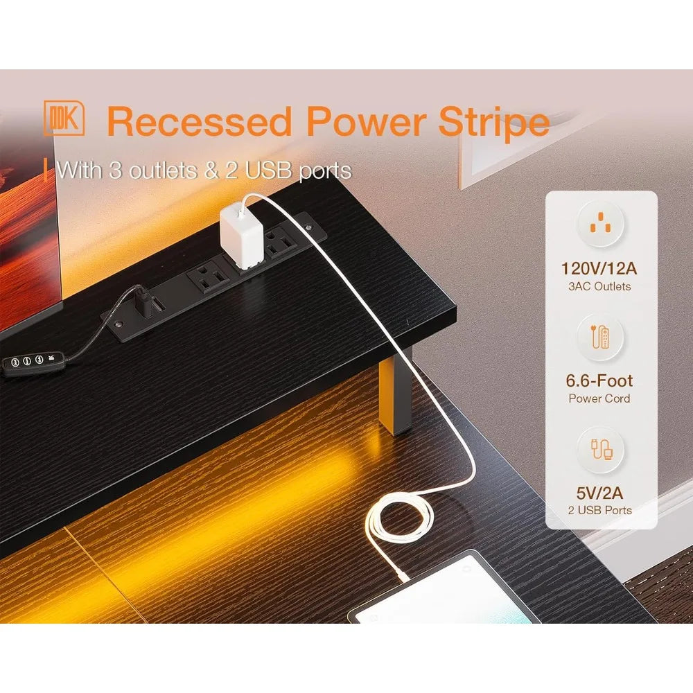 48 Inch Gaming Desk with LED Lights Power Outlets Monitor Stand Storage