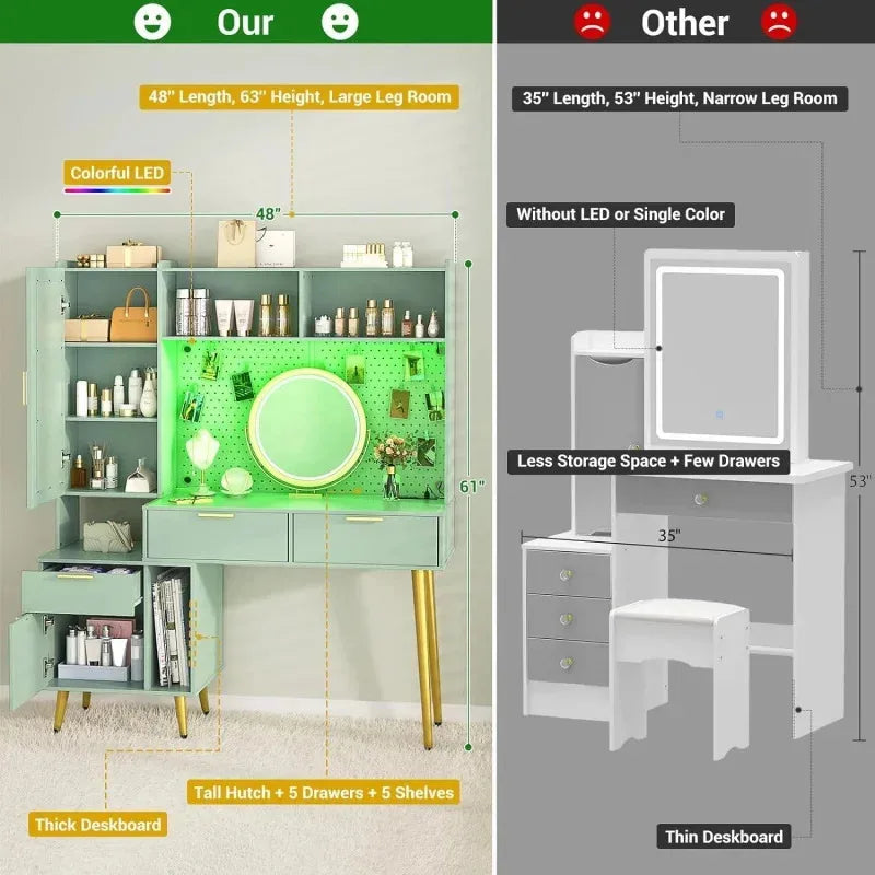 Discover the perfect blend of style and functionality with the Ljustra 48'' Makeup Hutch. This modern bedroom charging station and LED vanity table is designed to elevate your daily beauty routine and keep your space organized.