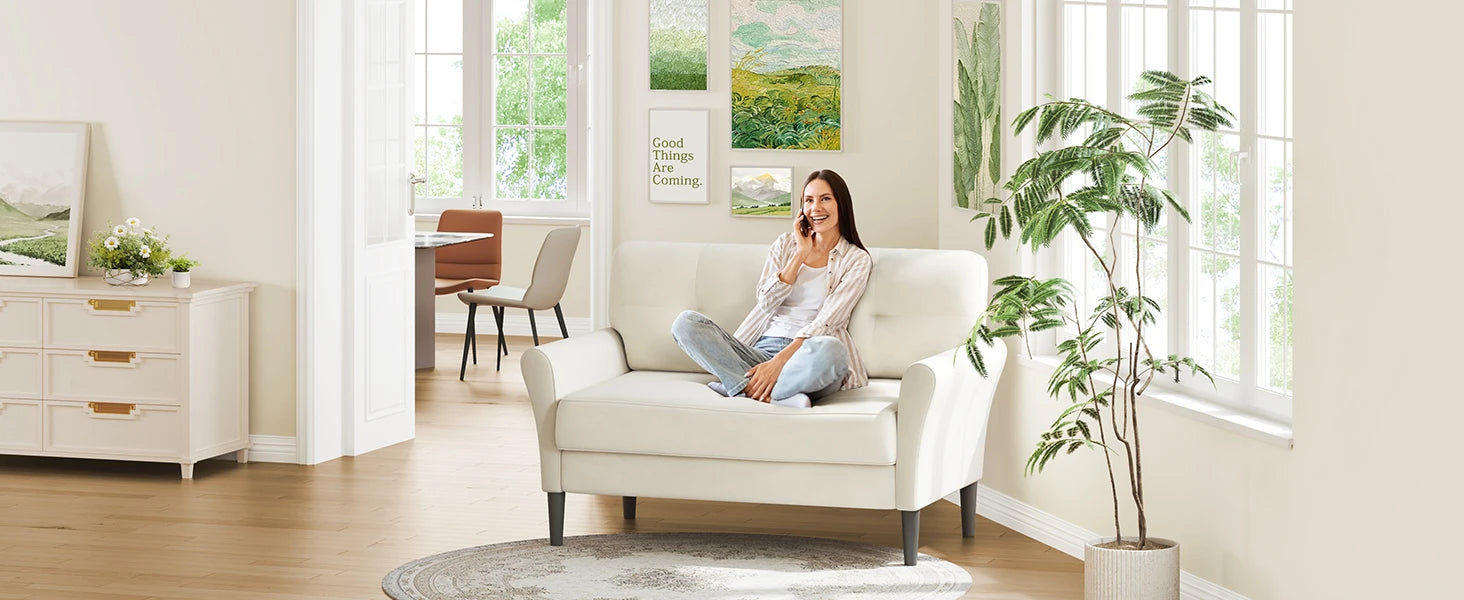 Introducing the Ljustra 48" Loveseat Sofa, a perfect blend of modern design and ultimate comfort. Crafted with premium soft velvet fabric, this loveseat is not just a piece of furniture; it's an experience.