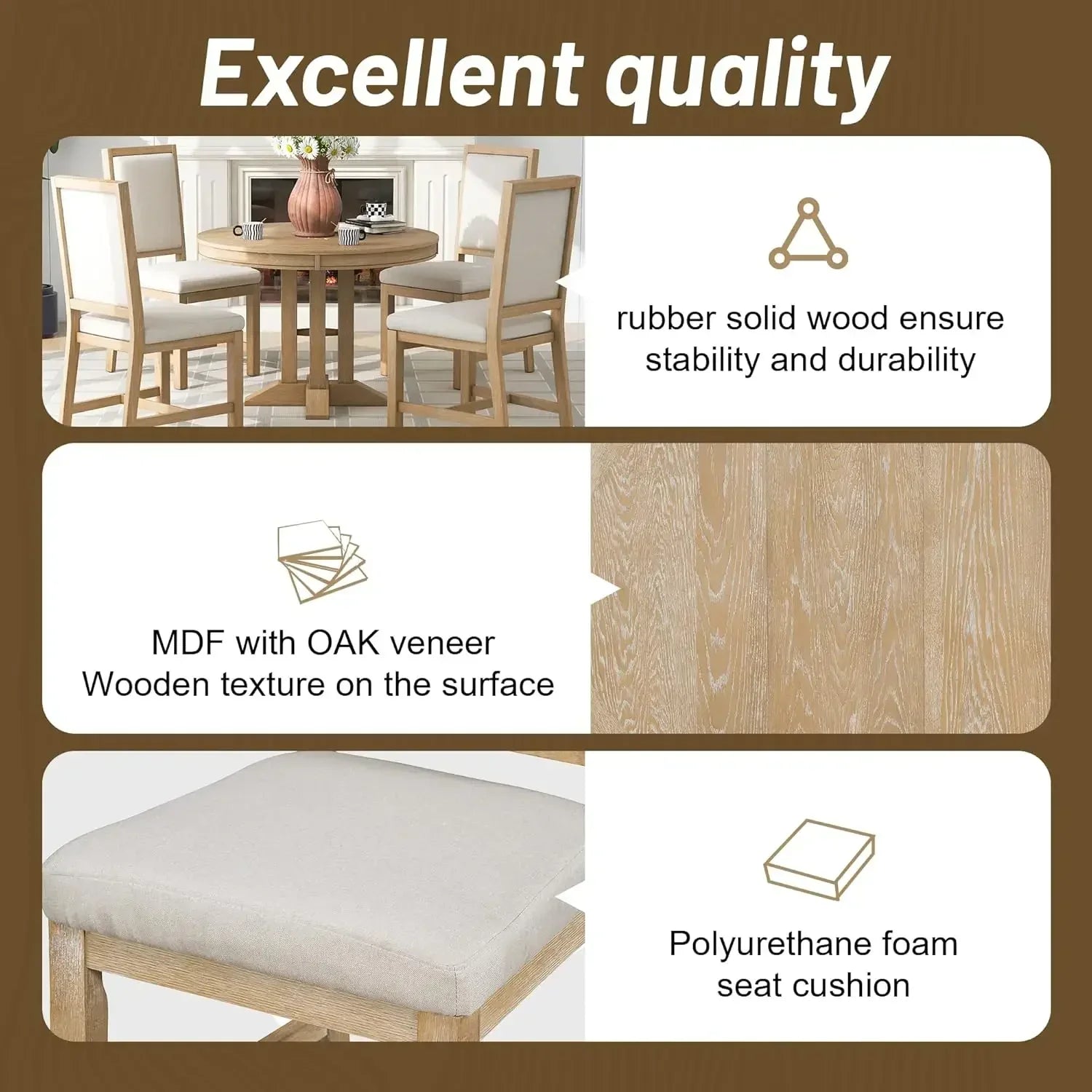 - 5-Piece Dining Set: Includes an extendable round table and four comfortable chairs, blending modern and farmhouse aesthetics.