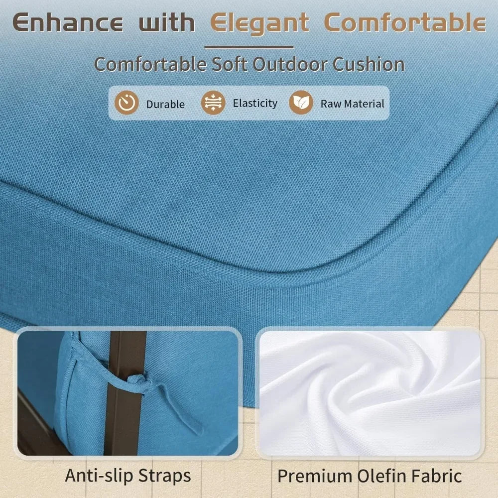 Our outdoor furniture set features premium quality, with cushions that are easy to clean and stay securely in place with attached strings. The unique gourd design adds comfort and elegance, while the vibrant cushion colors brighten up your outdoor space.