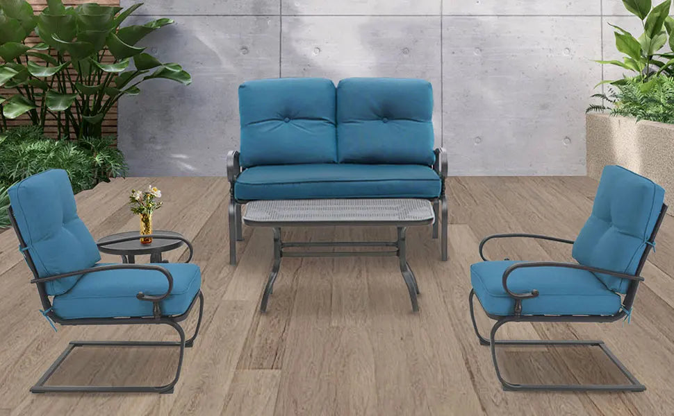 Elevate your outdoor gatherings with our stunning 5 Piece Metal Outdoor Furniture Set. This exquisite patio set combines style, comfort, and durability—perfect for any outdoor decor.