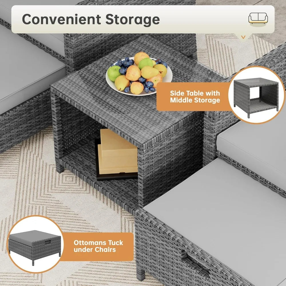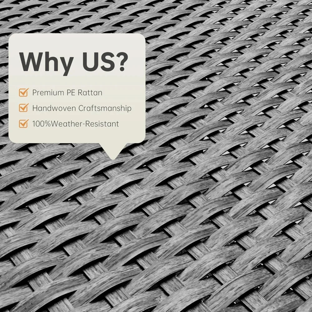 - 🌟 Durable & Weather-Resistant: Crafted from all-weather PE wicker, this set is waterproof and UV-proof, ensuring it retains its beauty even in harsh climates.
