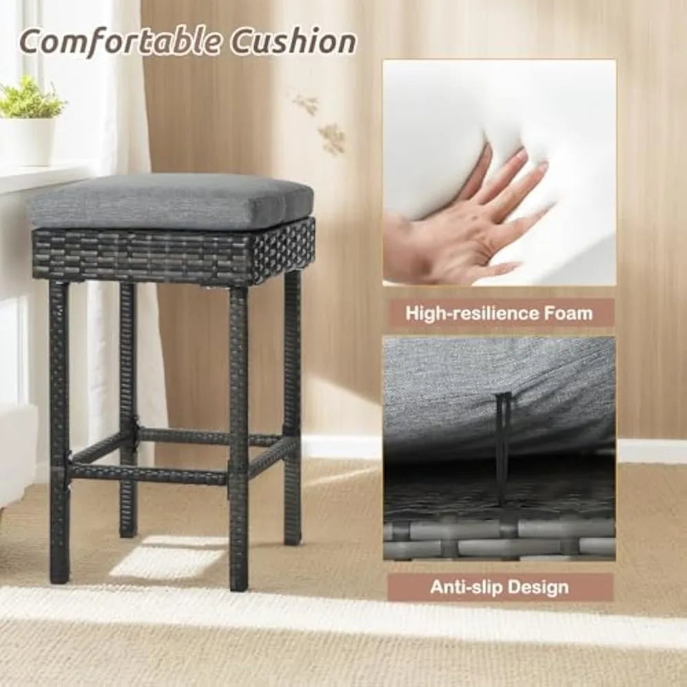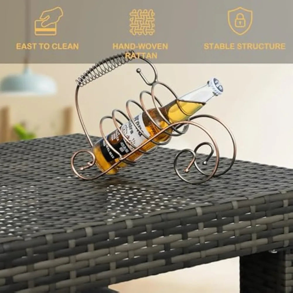 - Durable & Weather-Resistant: Crafted with a rust-resistant frame and UV-protected wicker, this set is built to withstand the elements for long-lasting enjoyment.