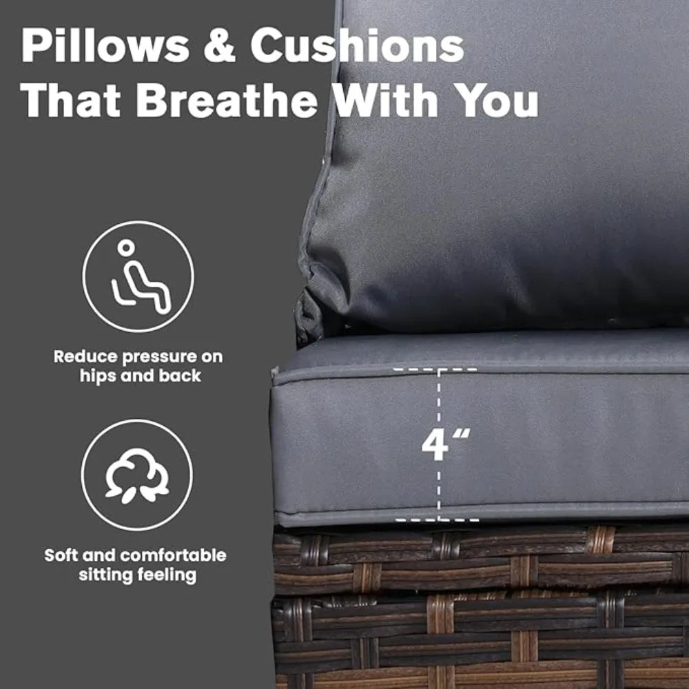 - 🌟 Comfortable Thick Cushions: Enjoy ultimate comfort with 4-inch thick, waterproof, and stain-resistant cushions.