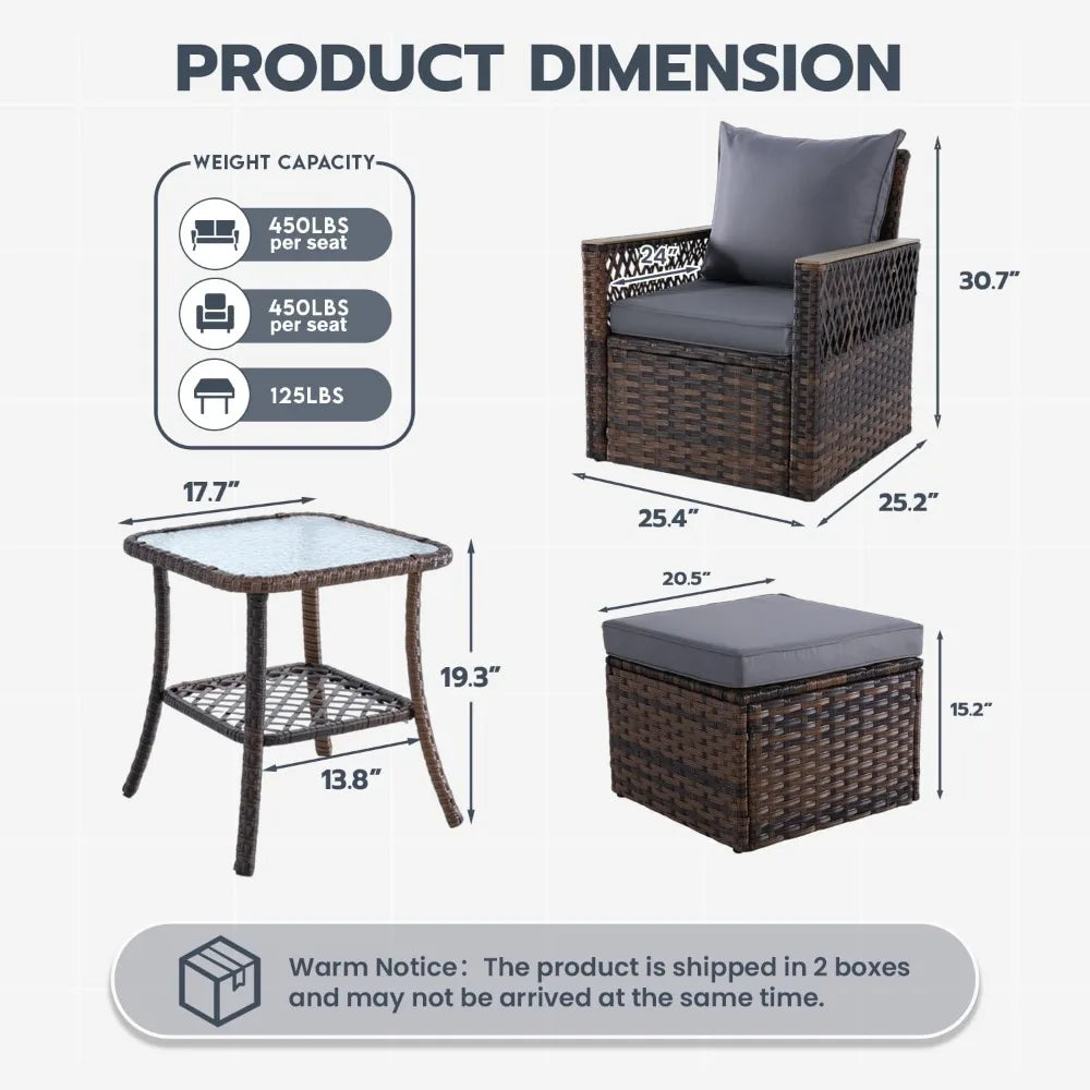 Elevate your outdoor living experience with our stunning 5-Piece Patio Furniture Set, featuring an outdoor swivel glide chair with ottomans and a stylish side table. Designed with modern aesthetics and comfort in mind, this set is perfect for relaxing moments in your garden, patio, or balcony.