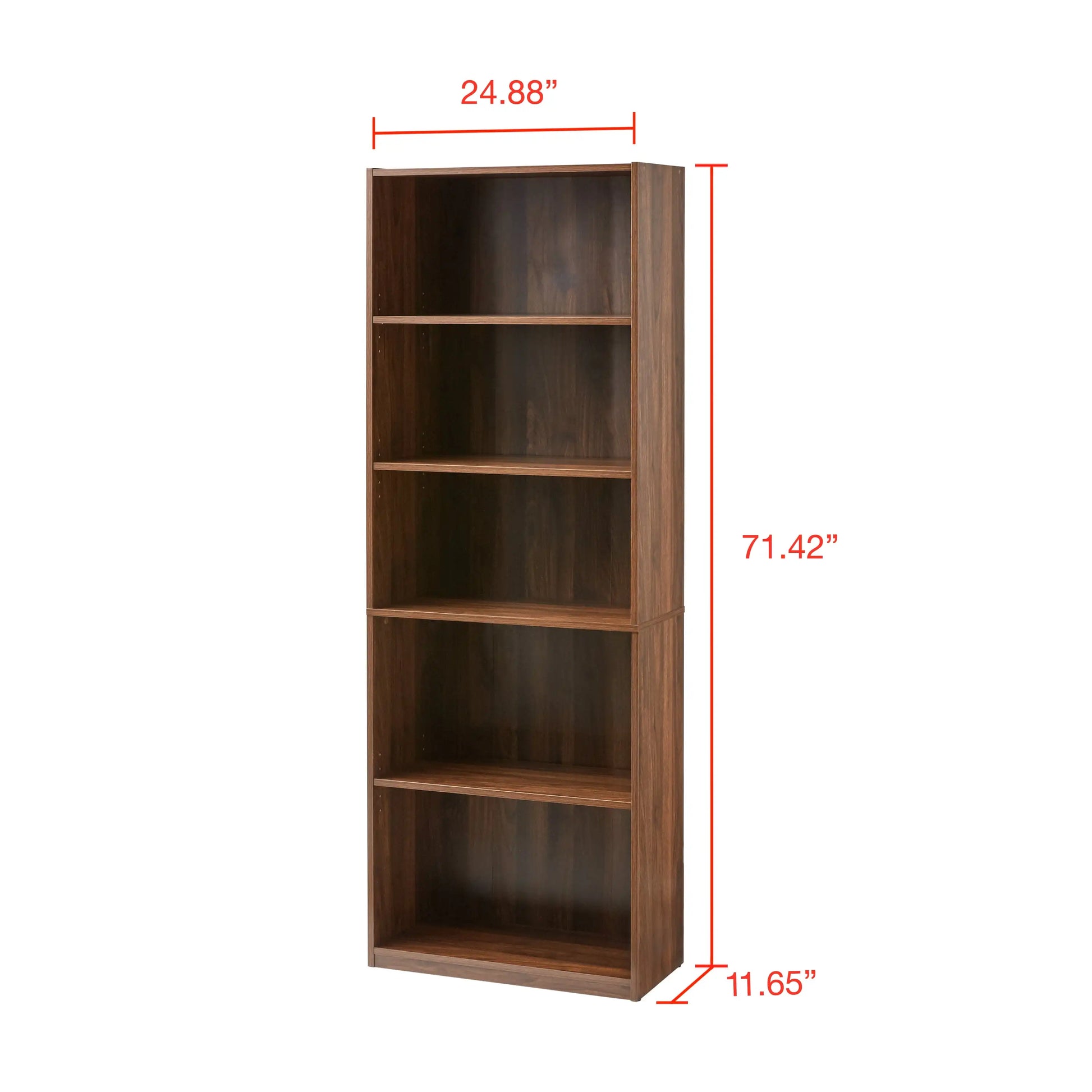 5 Shelf Bookcase Adjustable Shelves Sturdy Canyon Walnut Storage