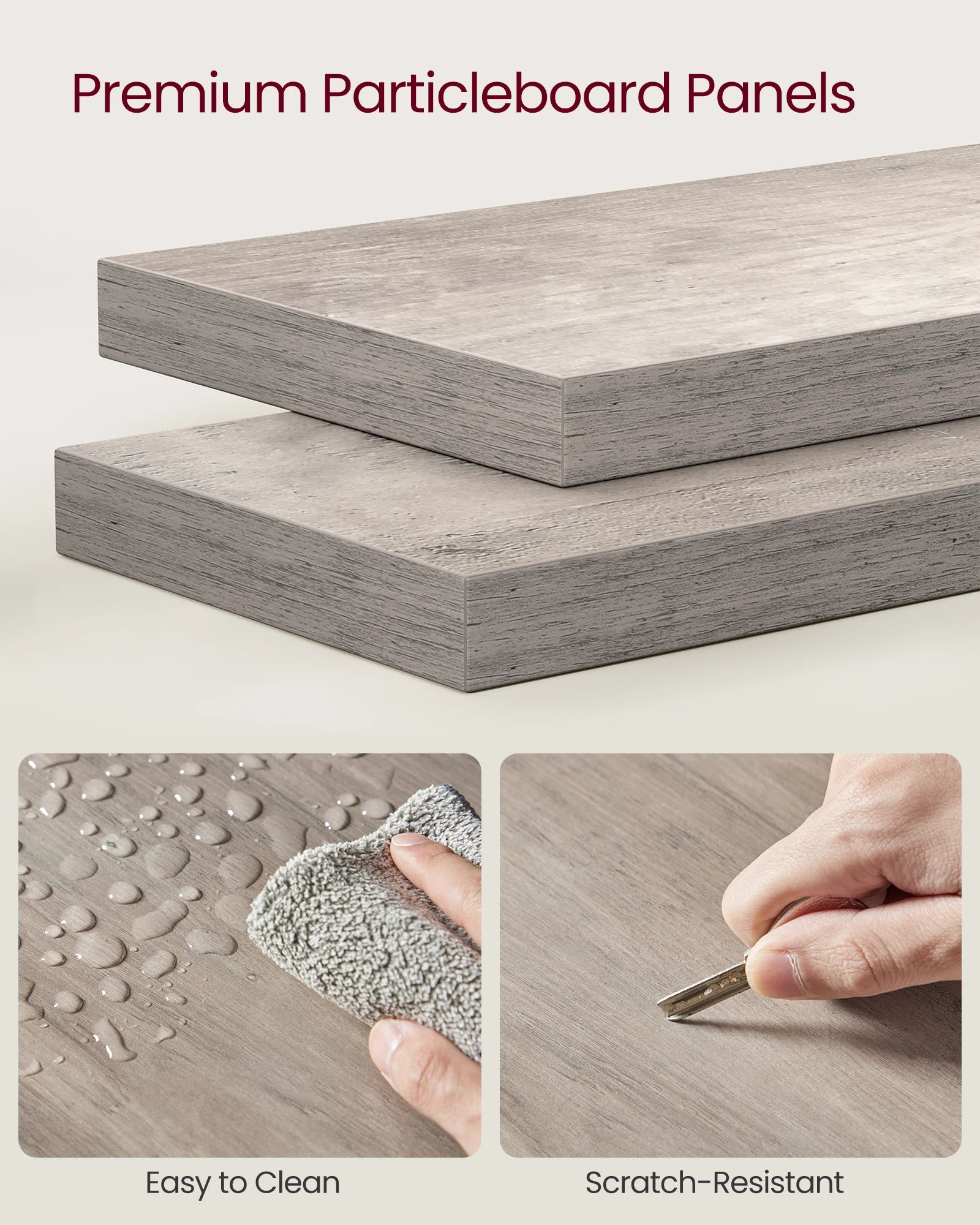 - Modern Design: Its unique zigzag design and heather greige shelves add a rustic charm to your home.