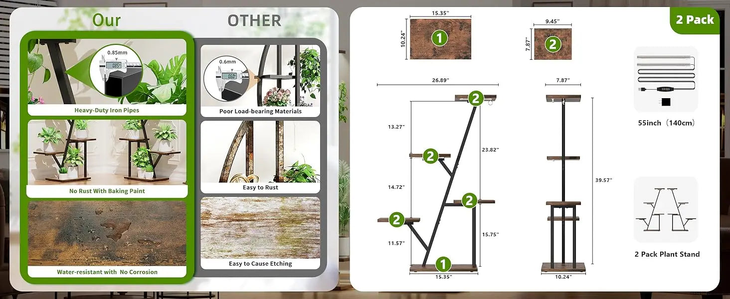 - 5-Tier Design: Standing at 40 inches tall, this plant stand accommodates up to 14 plants, making it perfect for plant lovers.