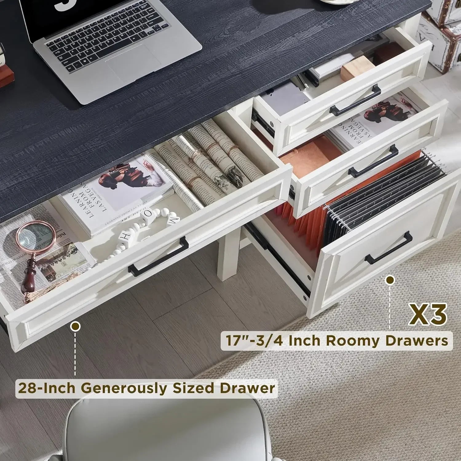 53 Inch Home Office Desk with File Cabinet Modern Farmhouse Computer Desk
