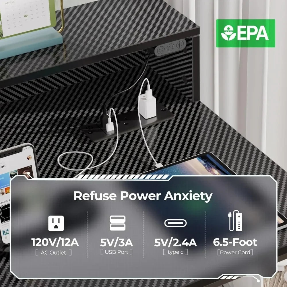 - Built-in Power Strip: Stay connected with a built-in power strip featuring 2 AC outlets, 2 USB ports, and 1 Type-C port, allowing you to charge multiple devices simultaneously.