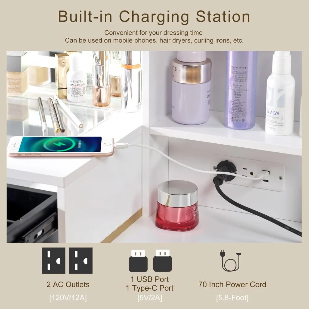 - Convenient & Versatile: Equipped with a hair dryer holder and built-in outlets (2 AC, 1 USB, 1 Type-C), all ETL-certified for safety, ensuring a hassle-free beauty routine.