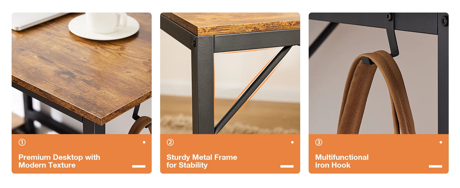 - Premium & Sturdy Design: Crafted from high-quality particleboard, this desk is waterproof and easy to clean. The durable metal frame ensures reliable support for your daily tasks.