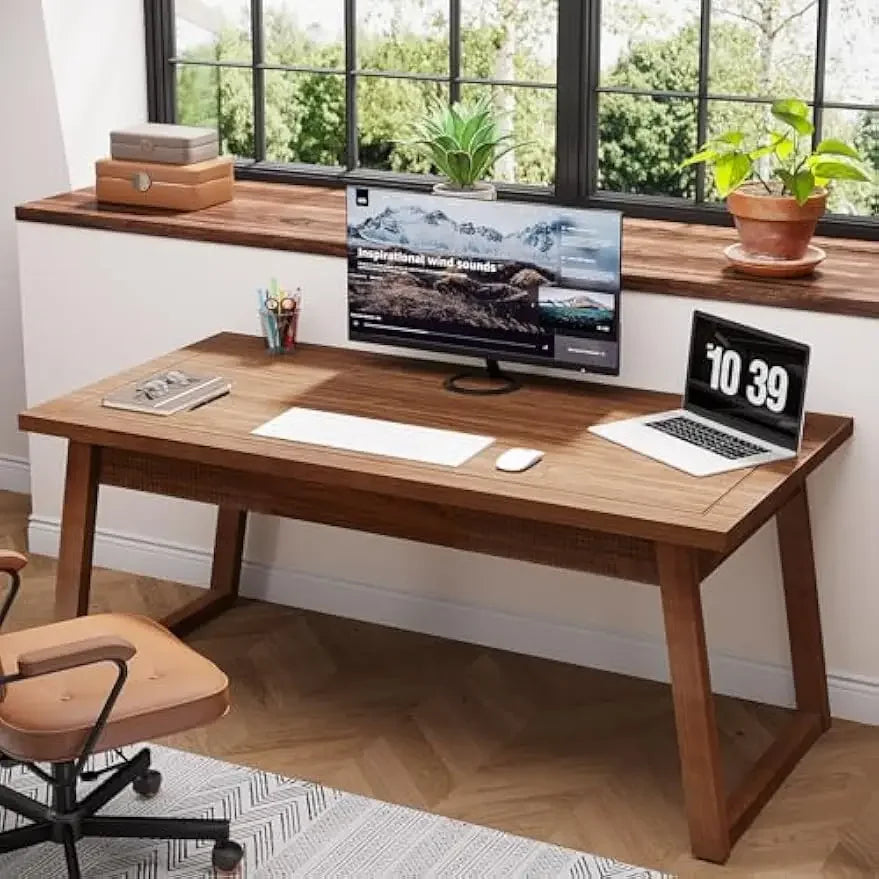 - Durable Construction: Made with solid wood legs and a robust MDF desktop, this desk can support up to 400 pounds. The scratch-resistant and heat-resistant wood grain veneer ensures long-lasting beauty.