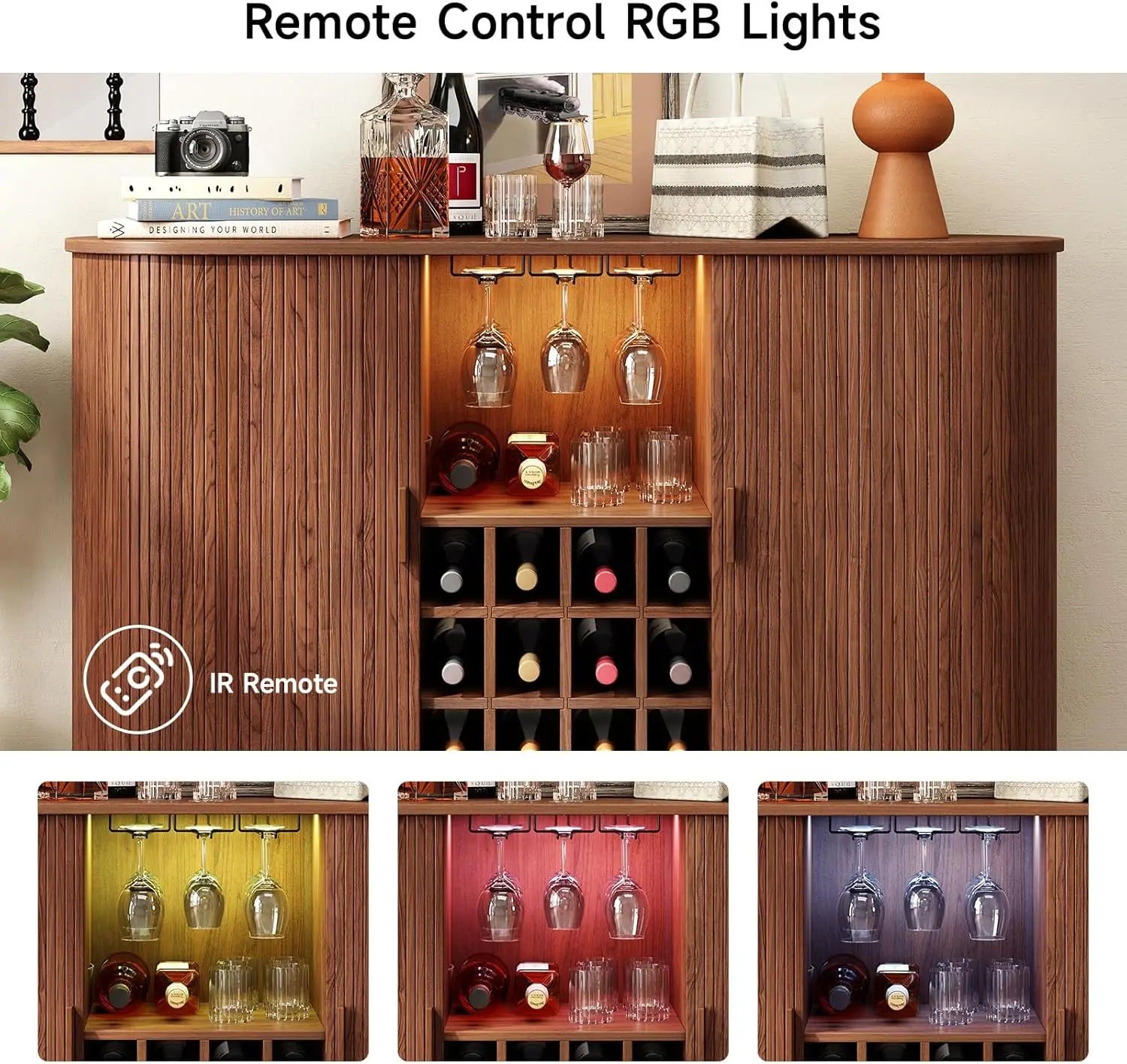 Limited Stock 55 Inch Wine Bar Cabinet with LED Light Modern Storage