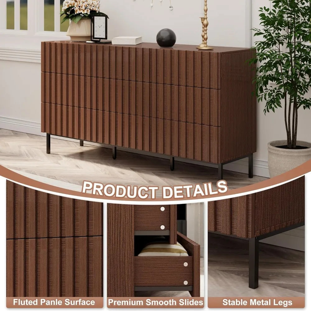 - Mid Century Modern Design: This dresser features a unique fluted pattern on its drawers, complemented by a smooth finish that adds sophistication to your home decor.