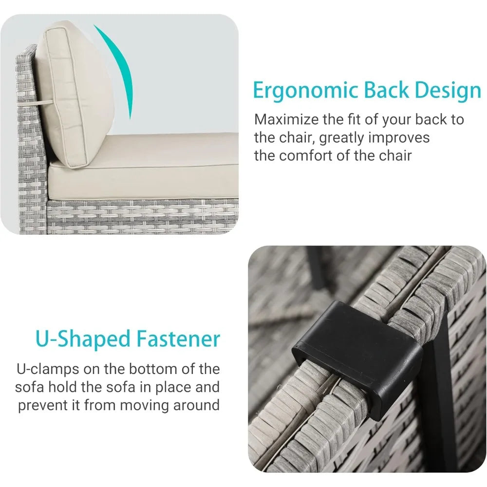 Elevate your outdoor living experience with our exquisite 6-Piece Wicker Patio Furniture Set. This versatile set includes everything you need for relaxation and entertainment: a left armrest sofa, right armrest sofa, two armless sofas, a multifunctional sofa that can be configured as an armless or corner sofa, and a stylish tempered glass coffee table.