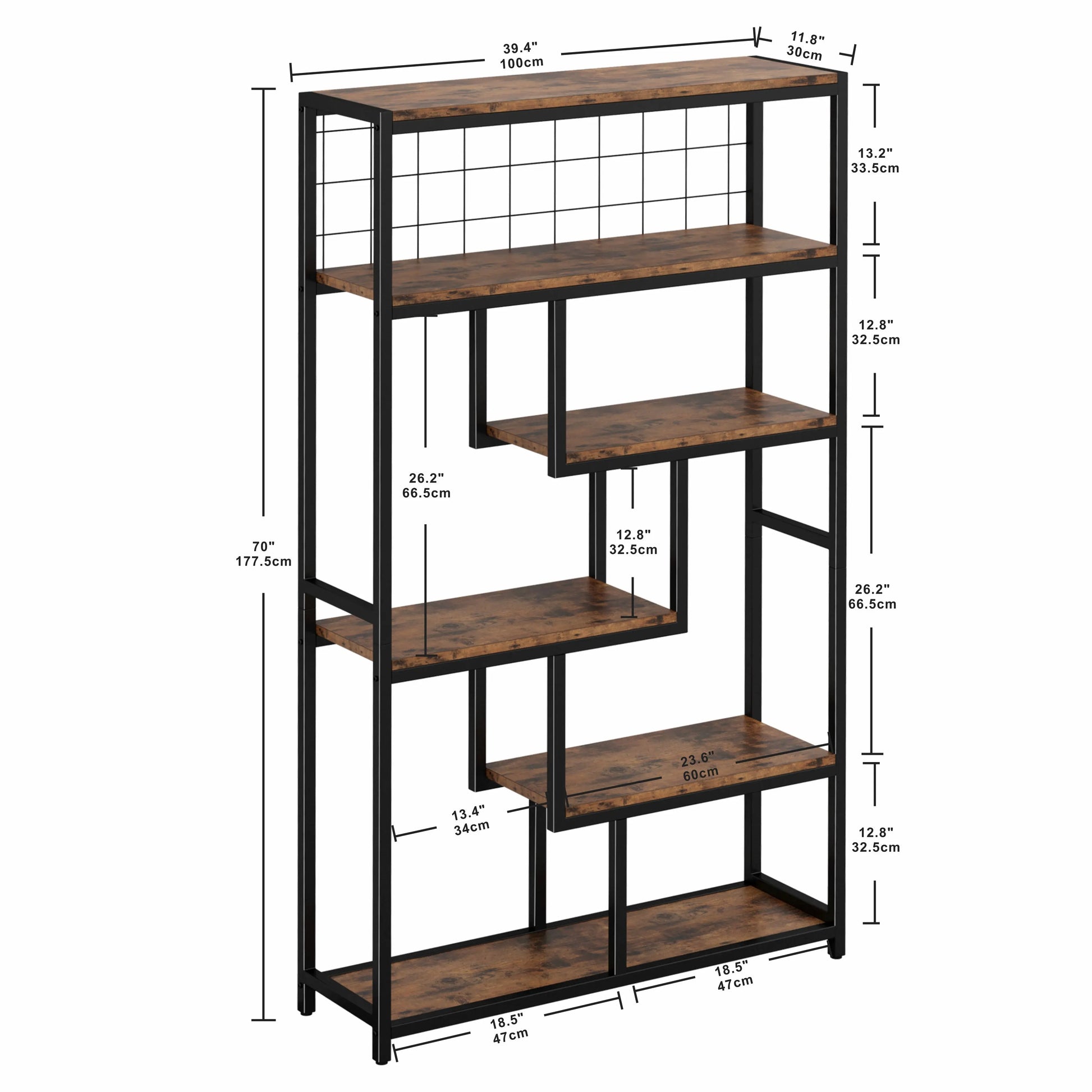 Ljustra 6-Shelf Industrial Etagere Bookcase Open Display Bookshelf
