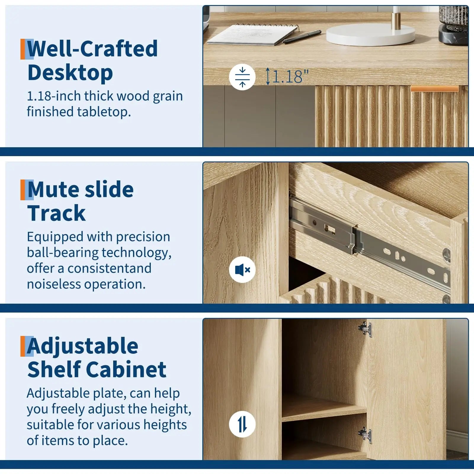 - Sturdy Construction: Crafted with a 1.18" thick MDF desktop and side panels, this desk ensures long-lasting durability and a stable workspace.