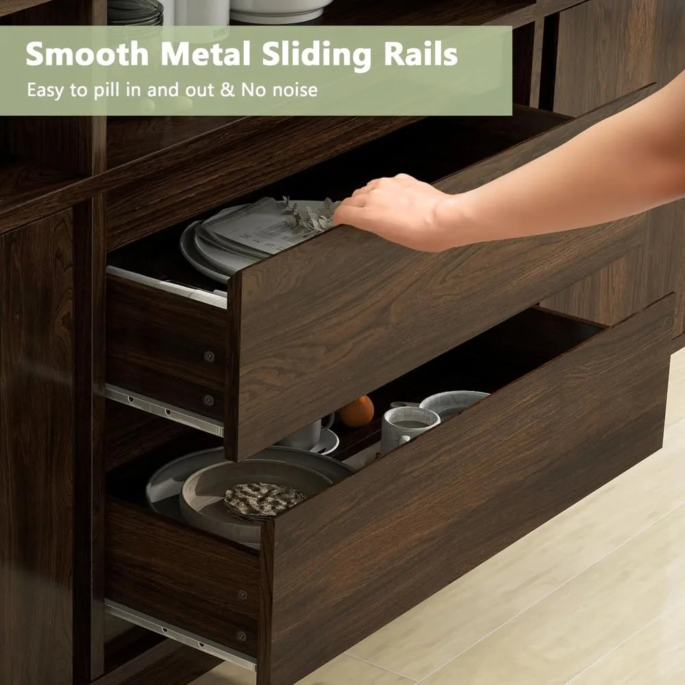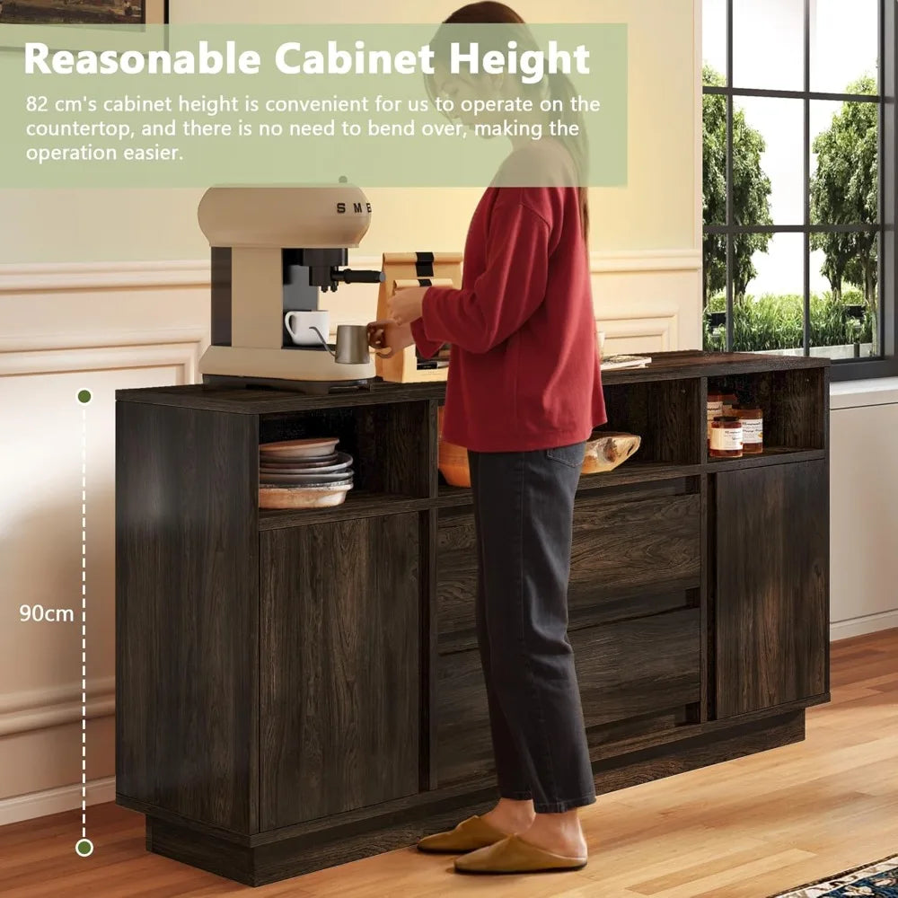 - Spacious Storage Space: Equipped with two doors and three drawers, this cabinet offers an open storage area to keep your coffee beans, spices, and utensils organized.