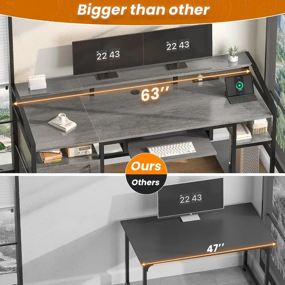 Experience the perfect blend of functionality and style with the Ljustra 63 Inch Computer Desk. Designed for both productivity and gaming, this desk features a modern industrial aesthetic that enhances any office or gaming setup.