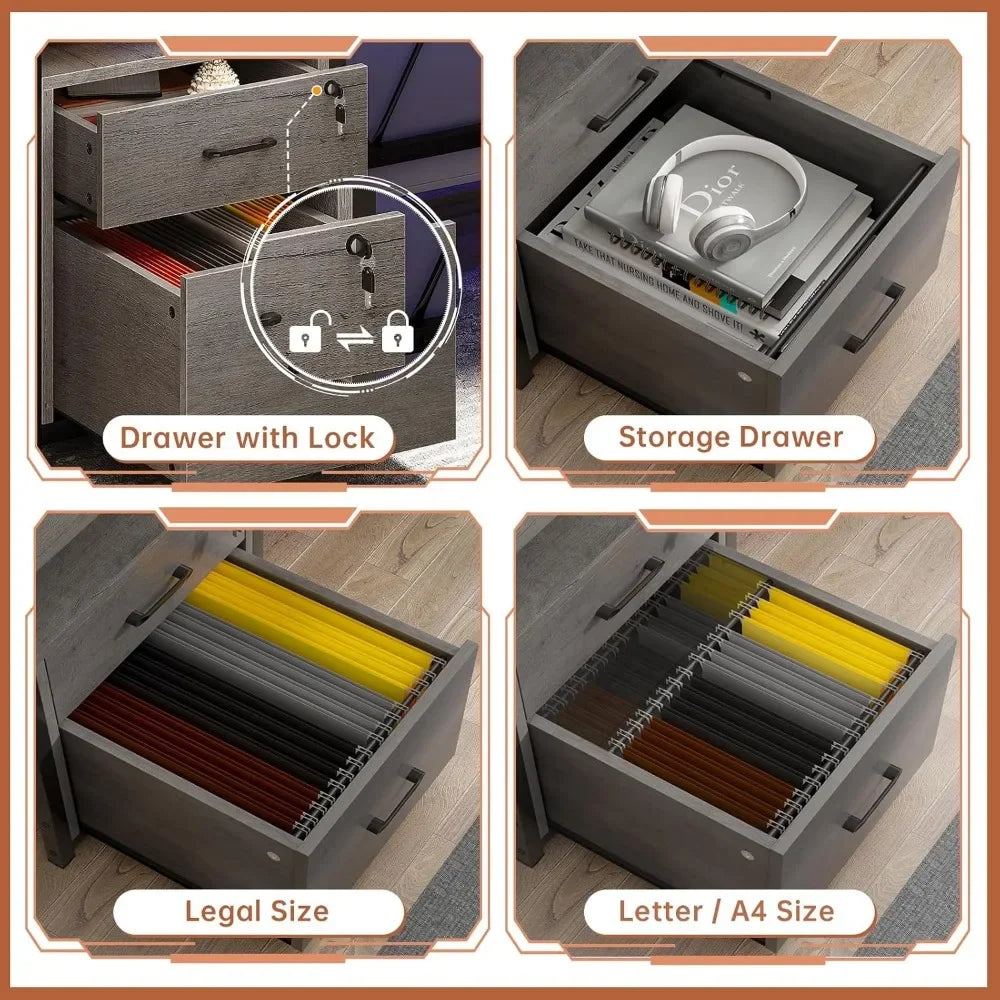 - Ample Storage: Includes a lockable drawer for documents, a file drawer for Legal/Letter/A4 files, and two spacious storage shelves.