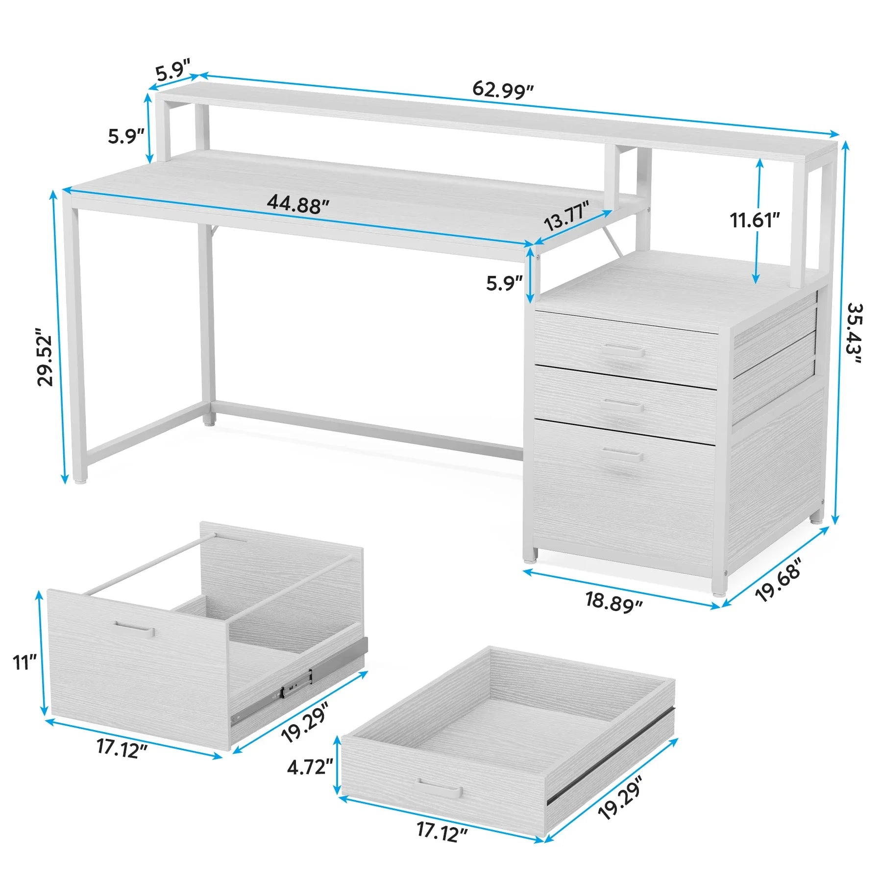 - Ample Workspace: With a generous 63’’ L x 19.68’’ D desktop, there’s plenty of room for multiple monitors, laptops, and essential office supplies.