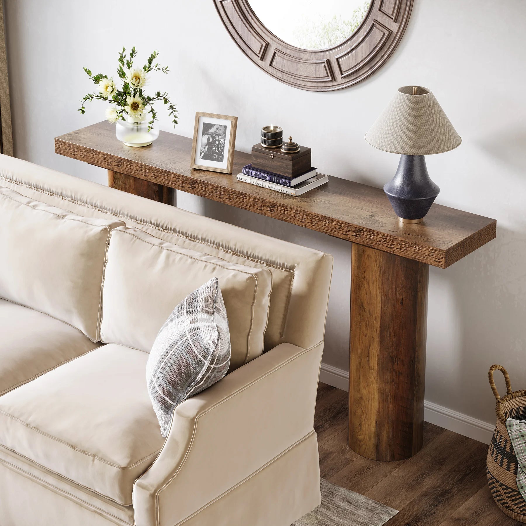 Introducing the perfect blend of style and functionality, the Ljustra 63" Long Bar Table is designed to elevate your home or commercial space. Its rustic, farmhouse aesthetic makes it a charming addition behind your couch or in your home bar.