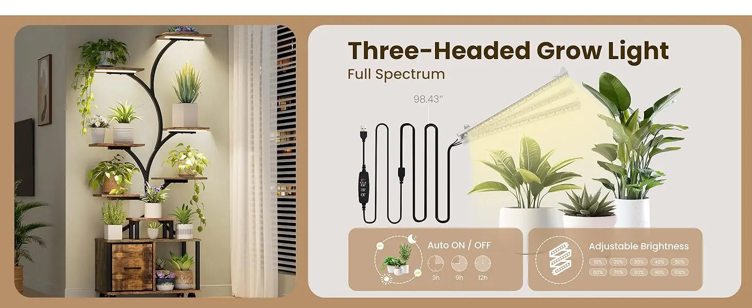 Introducing the Ljustra 65" Indoor Plant Stand, the perfect blend of functionality and aesthetics for any home decor! This tiered metal plant shelf not only provides ample space for your greenery but also features integrated grow lights to ensure your plants thrive.