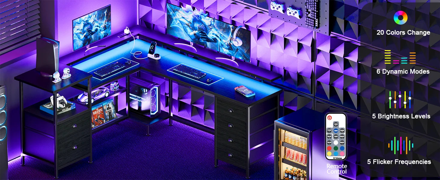 Elevate your home or office with the Ljustra 67 Inch Office Desk, designed for the modern user. This versatile desk features built-in power sockets and LED lights, making it perfect for gamers, students, and professionals alike.