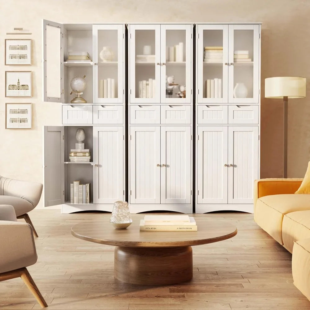67 Inch Tall Storage Cabinet Freestanding Kitchen Pantry with Glass Doors