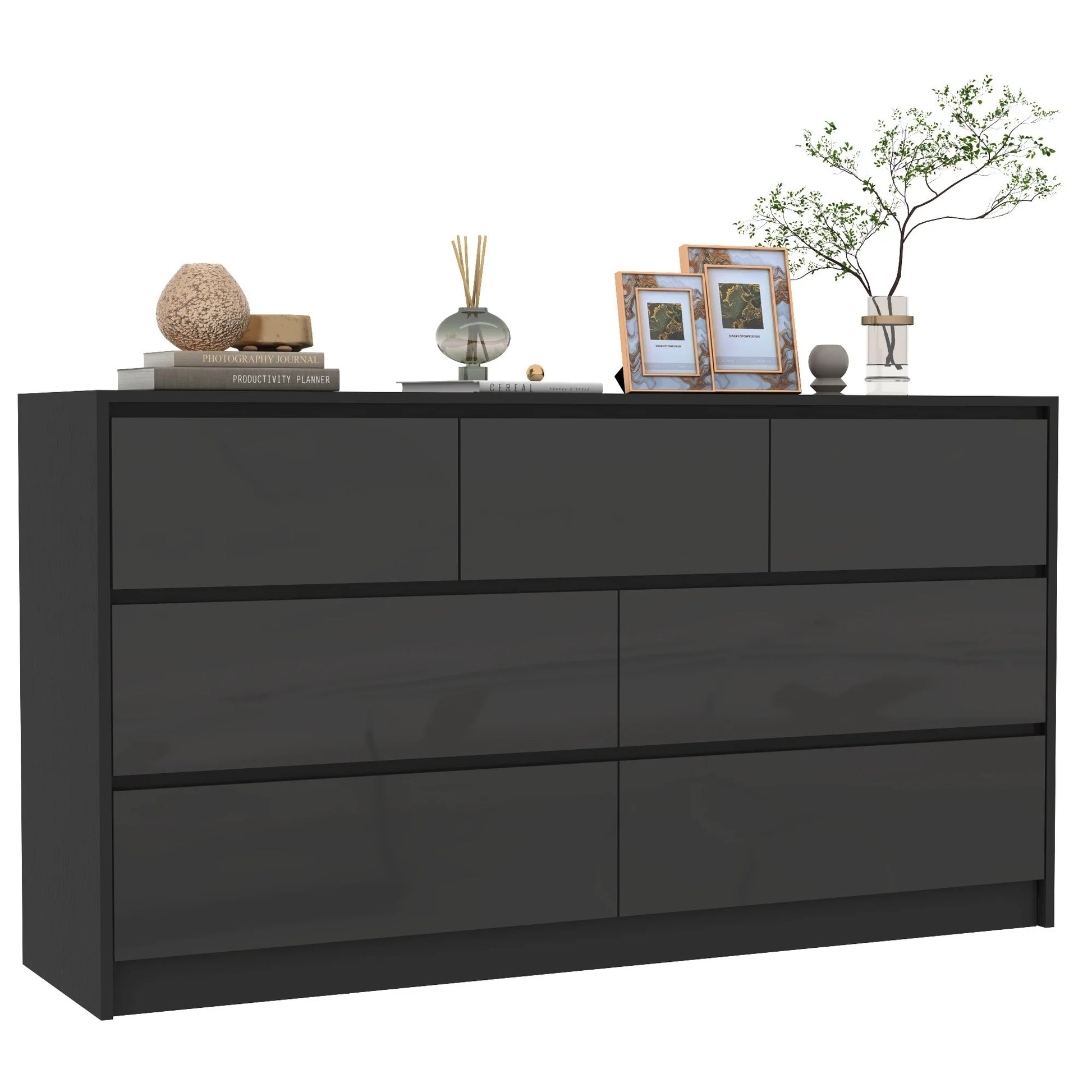 Modern 7 Drawer Dresser Spacious Storage High Gloss Bedroom Furniture
