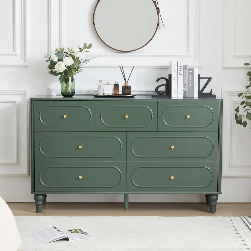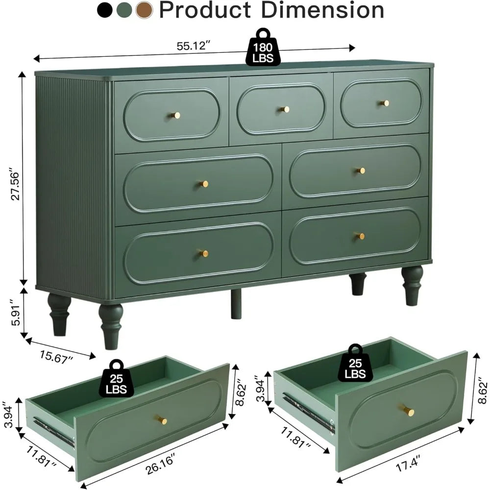 7 Drawer Fluted Dresser Mid Century Modern Chest of Drawers Organizer
