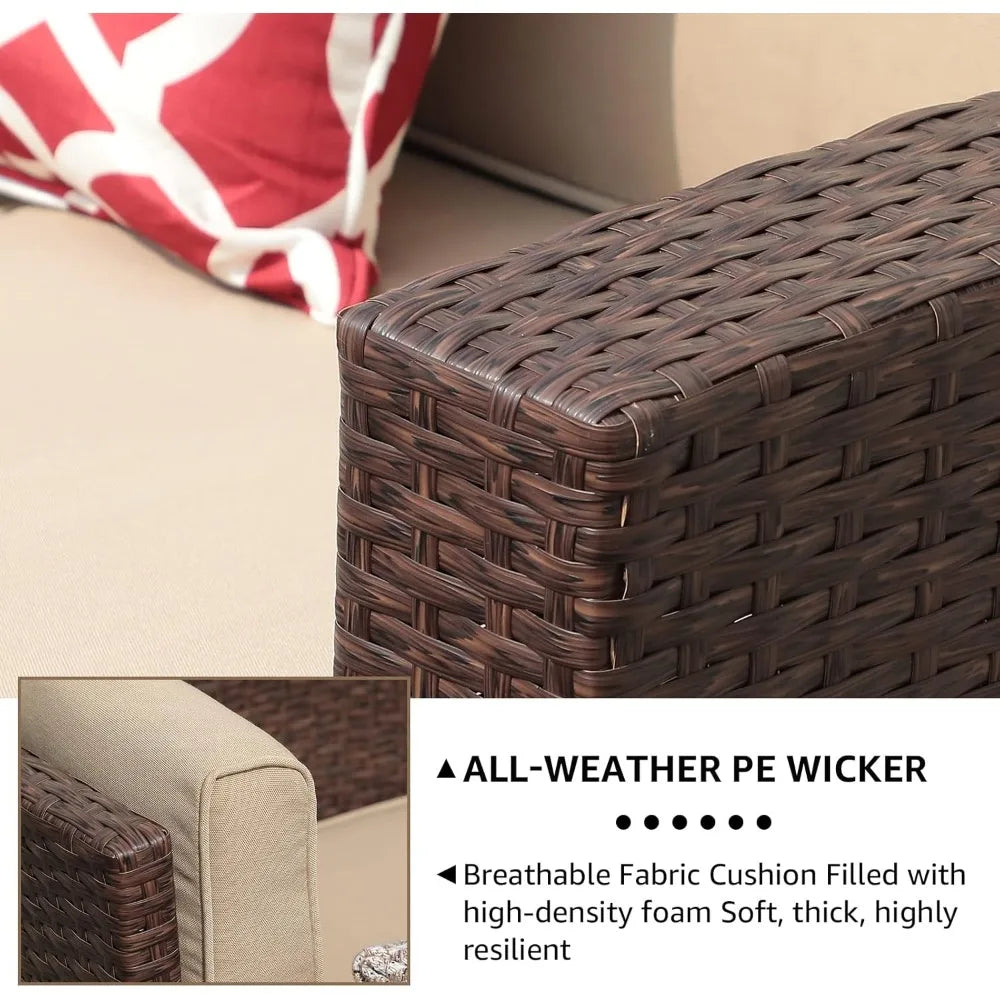 7 Piece Outdoor Patio Furniture Set Sectional Sofa with Ottoman