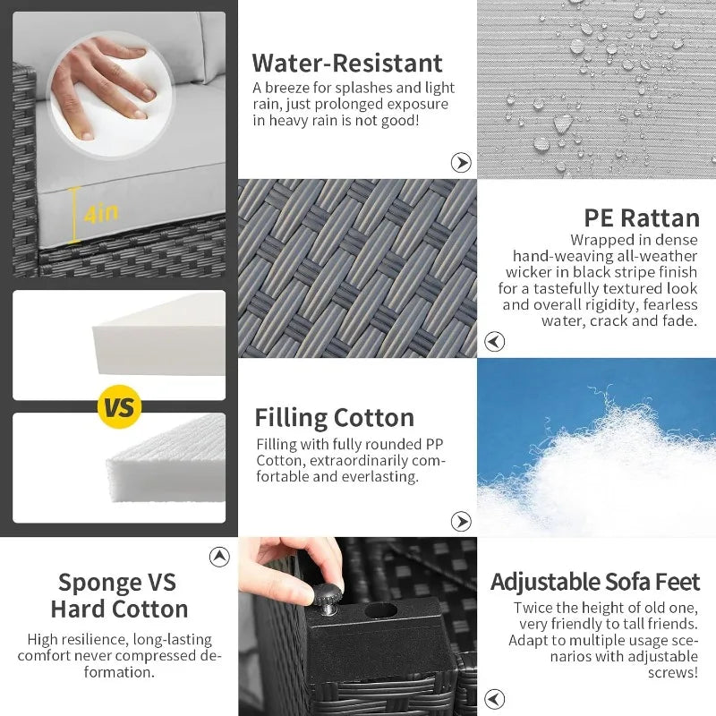 - Quality and Durability: Built on a robust anti-rust steel frame wrapped in high-density polyethylene wicker, this set ensures lasting durability and a stylish finish.
