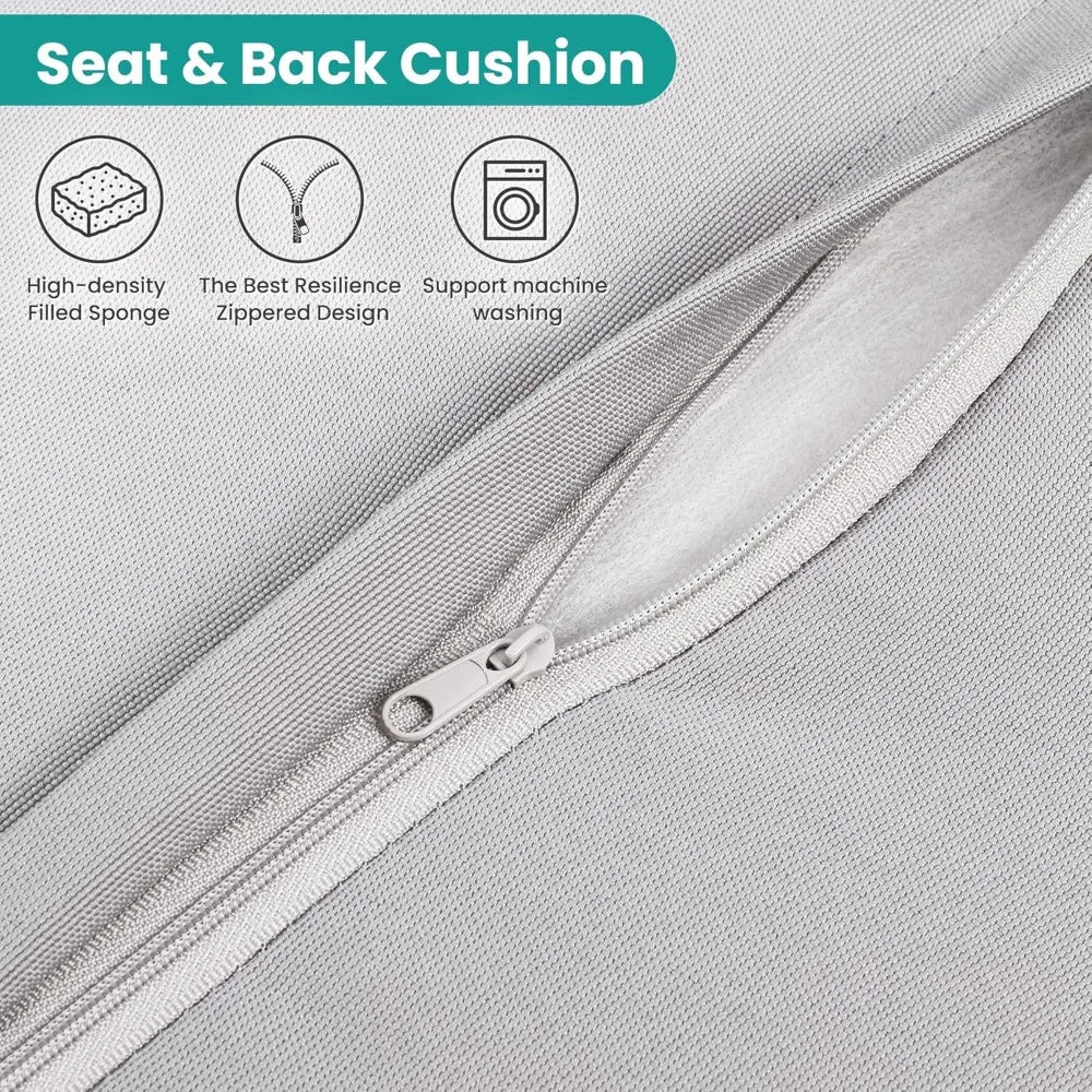 - Comfortable Seating: Enjoy plush seating with our upgraded sponge cushions that provide optimal comfort. The detachable zipper design allows for easy cleaning, while the splash-resistant fabric ensures durability.
