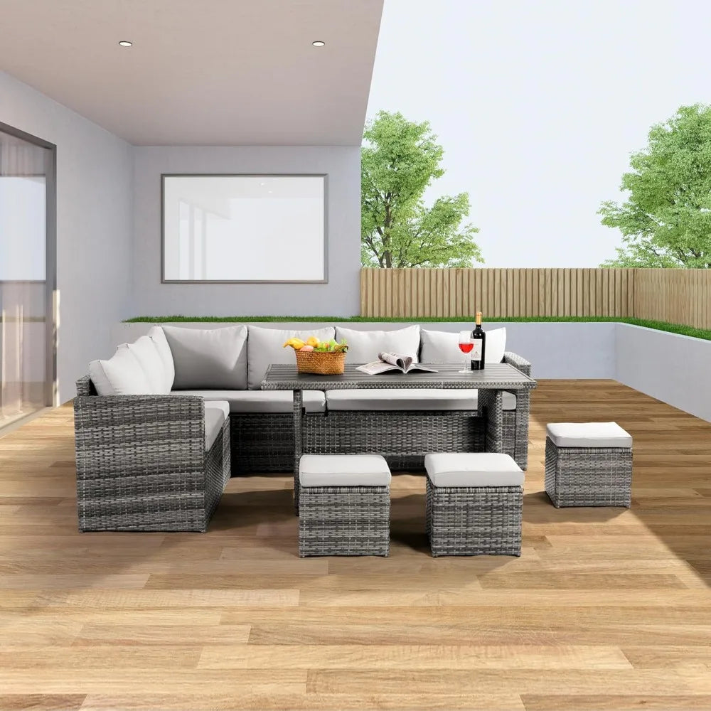 - Packing Included: This set includes 2 single armrest loveseats, 1 corner loveseat, 1 wooden dining table, 3 ottomans, and 13 cushions, along with all necessary hardware and detailed assembly manuals.