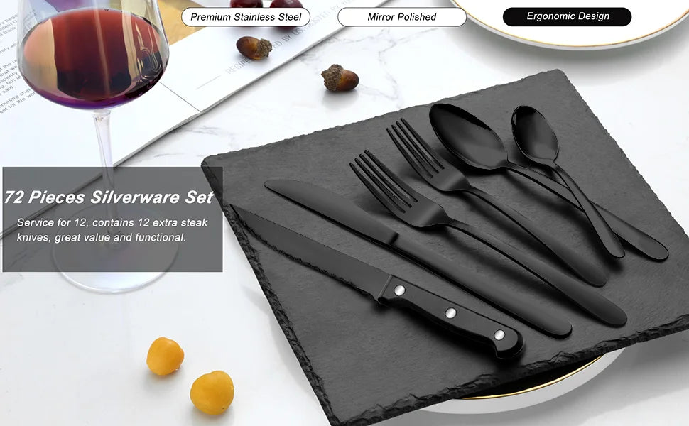 72-Piece Stainless Steel Flatware Set for 12 with Steak Knives